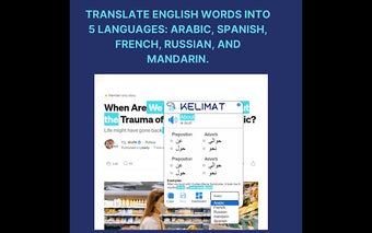 Kelimat adalah ekstensi Chrome yang dirancang untuk membantu pengguna belajar Bahasa Inggris dengan cara yang menyenangkan dan interaktif. Dengan fitur-fitur seperti definisi kata instan, terjemahan berbasis AI, dan penyorotan kata cerdas, pengguna dapat belajar saat menonton video di YouTube, streaming di Netflix, atau menjelajahi situs web tanpa gangguan. Ekstensi ini memungkinkan pengguna untuk menyimpan kata-kata baru dan melakukan latihan yang dipersonalisasi, menjadikannya alat yang efektif untuk meningkatkan kosakata dan keterampilan bahasa secara keseluruhan.
